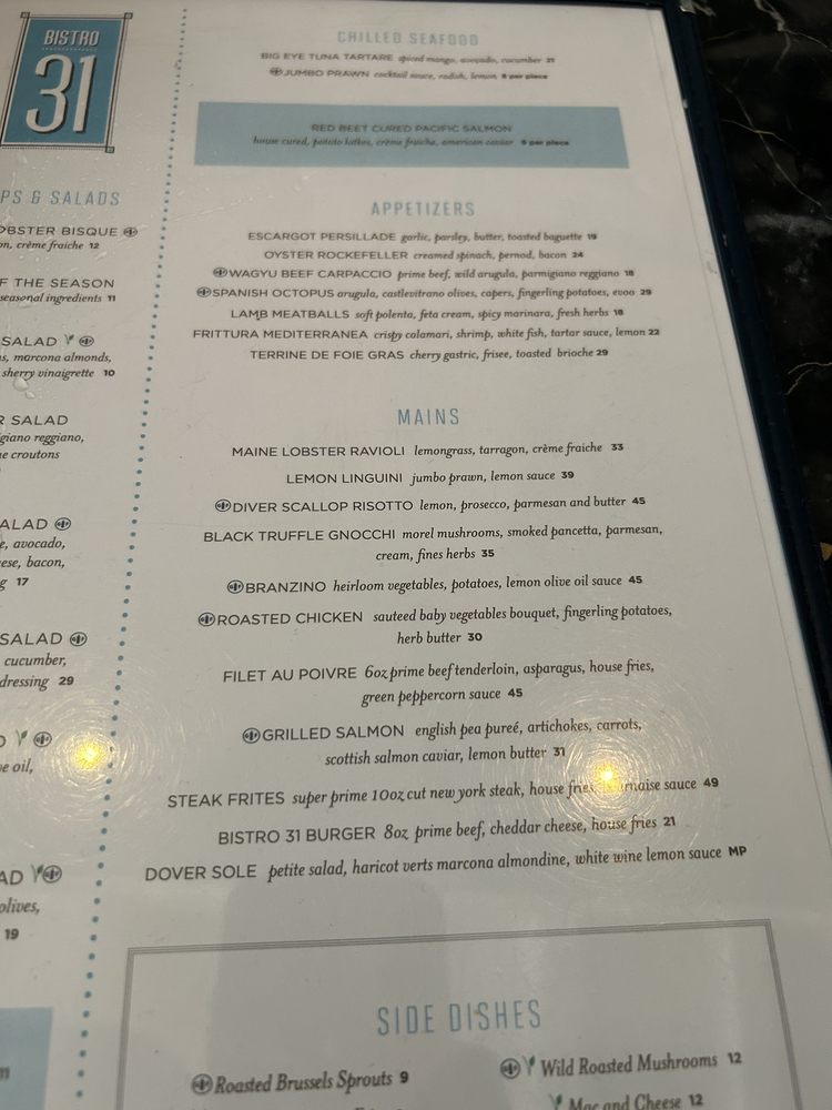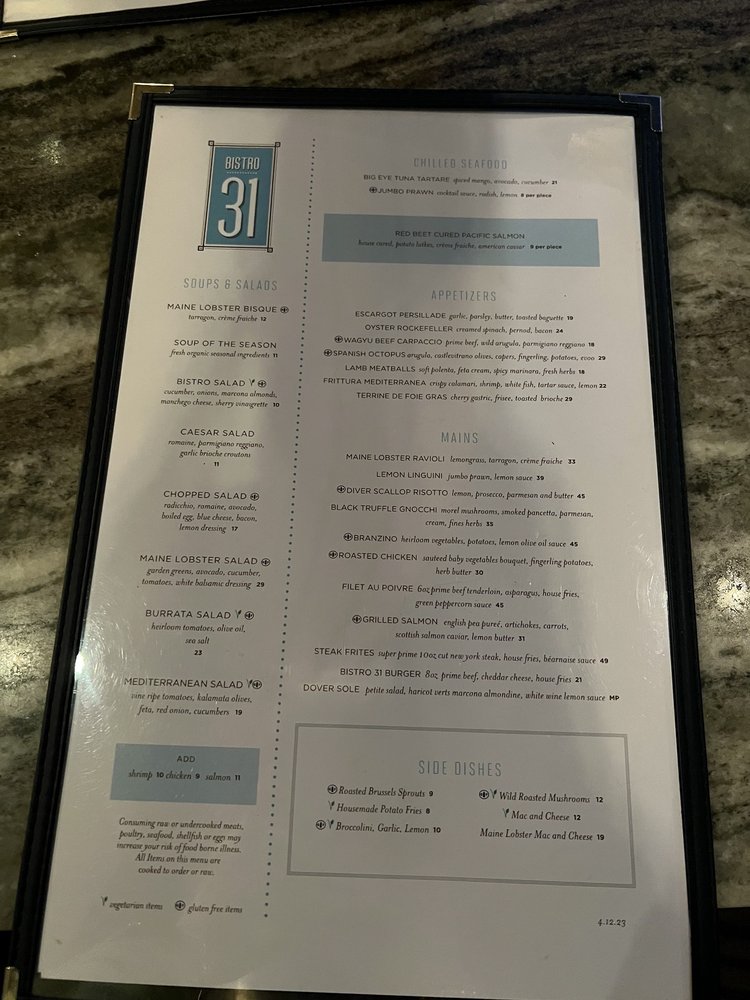 Bistro 31 offers a fusion of French and Spanish cuisine, located in Dallas, TX. This upscale restaurant provides a variety of vegetarian options and caters to different dietary preferences. With amenities like outdoor seating, full bar service, and catering, Bistro 31 caters to a wide range of customers. The menu features delectable soups and salads such as Lobster Bisque and Bistro Salad, along with tasty side dishes like Roasted Brussels Sprouts and Mac and Cheese. The boulangerie section offers freshly baked pastries like Pain Au Chocolate and Croissants. With a diverse menu and a sophisticated ambiance, Bistro 31 promises a memorable dining experience for lunch or dinner. I was particularly impressed by the attention to detail in each dish and the exquisite flavors that left me craving for more.